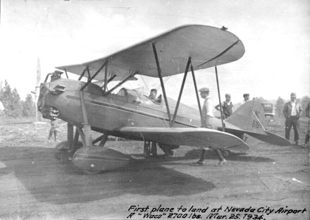 All the images on this page are courtesy of Andy Heins (left sidebar) and the National Waco Club archives. At right is 619Y, probably at Nevada City Airport, Sacramento, CA in 1934.